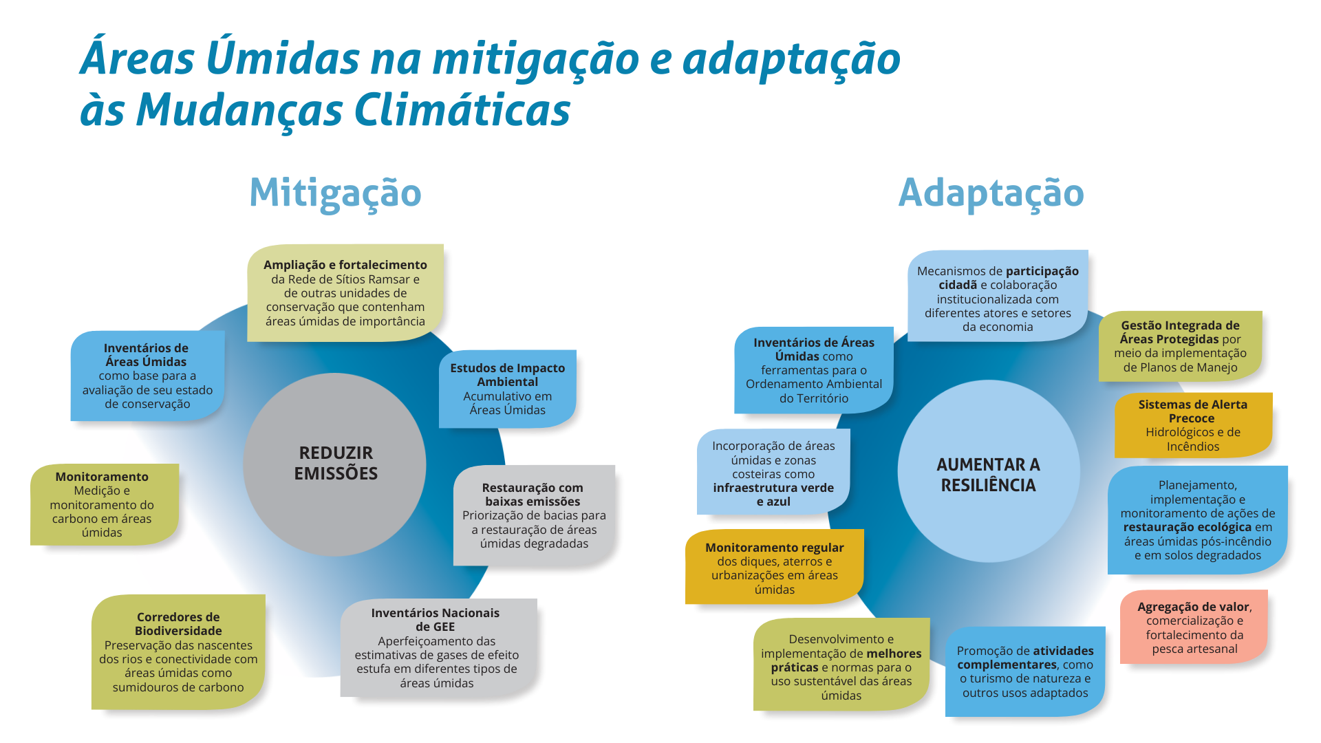 Ações possíveis para mitigar e nos adaptar aos efeitos das mudanças climáticas a partir das áreas úmidas.